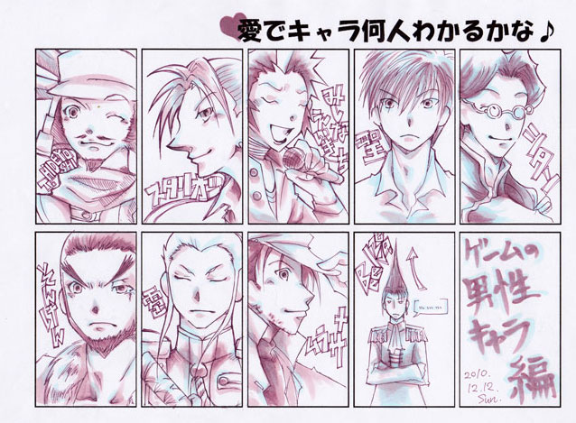 自分の好きなキャラを描いて見てくれてる人にわかりますか?なアレに挑戦してみましたパート2!! 今度の括りはゲームのキャラで男性編。色付けたのが12月入ってからですが、絵描いてたのはいつの頃かしら…(遠い目) 女性編同様ピックアップがちょっと昔に発売されたのばっか…しかも描いた当初はまだバサラ3やってなかった為 それも入ってませんし…入れれば良かった!! …わかるでしょか?? 因みにこんなチョイスです↓秀吉 game:戦国無双 戦国無双に私が手を出すきっかけとなった愛すべきオヤヂ!! 多分彼がいなかったら戦国無双ずっとやらんかったであろう…というレベル。 私的には2→無印猛将伝→3が好み…かな??内面は。 2の清濁併せ持つ彼が好きです。